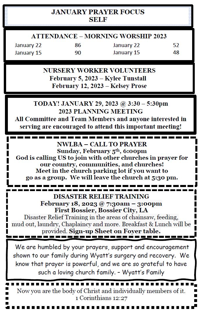 Sunday Bulletin  - January 29, 2023