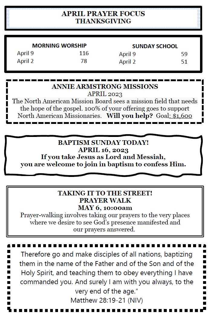 Sunday Bulletin - April 16, 2023
