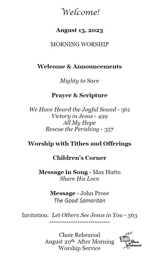 Sunday Bulletin - August 13, 2023