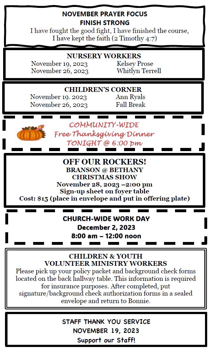 Sunday Bulletin - November 12, 2023