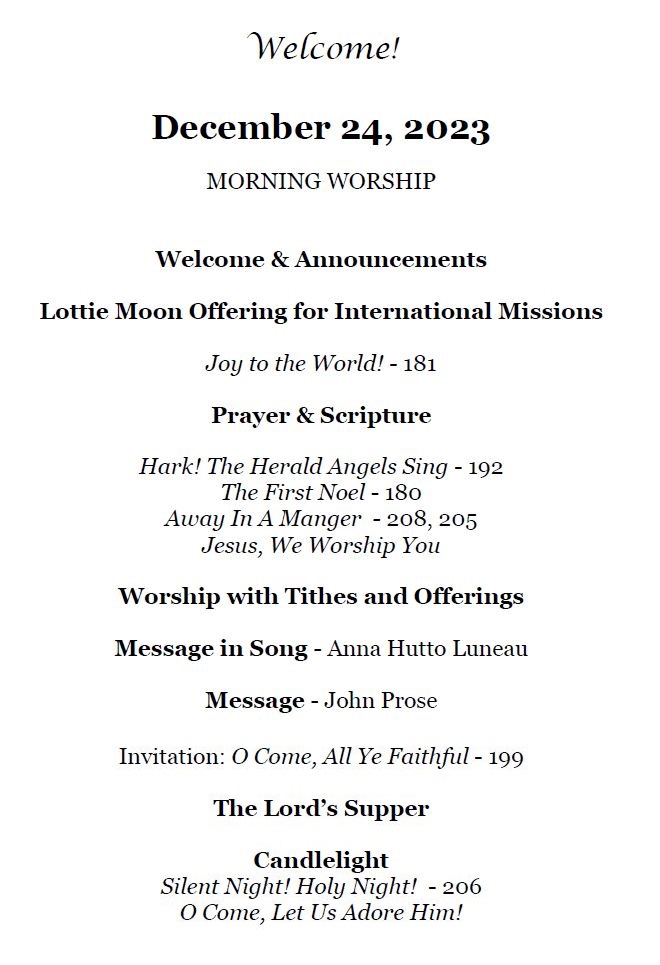 Sunday Bulletin - December 24, 2023