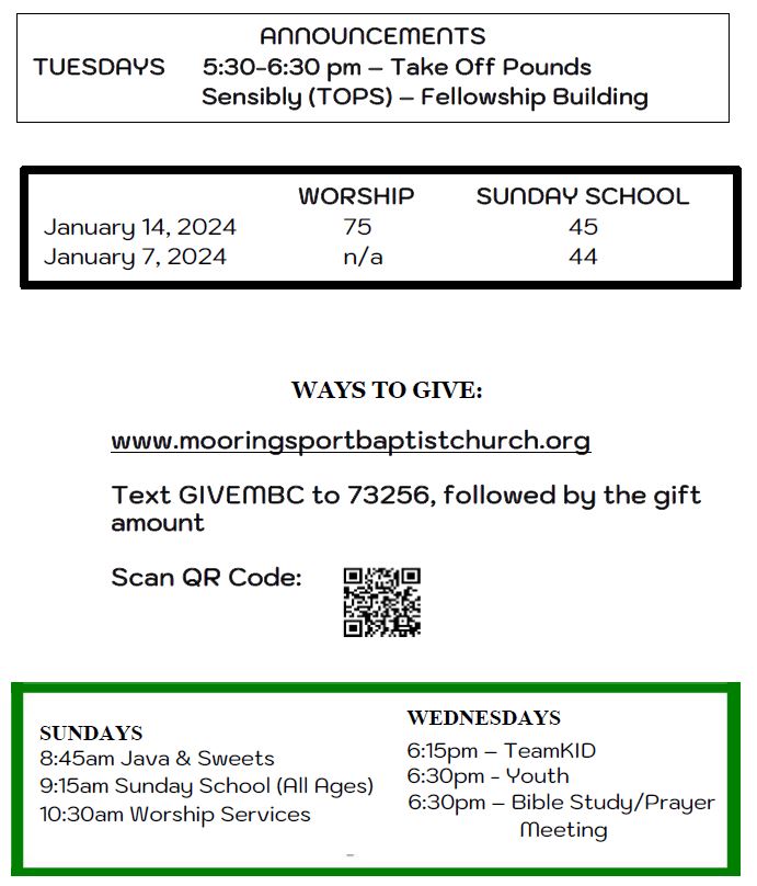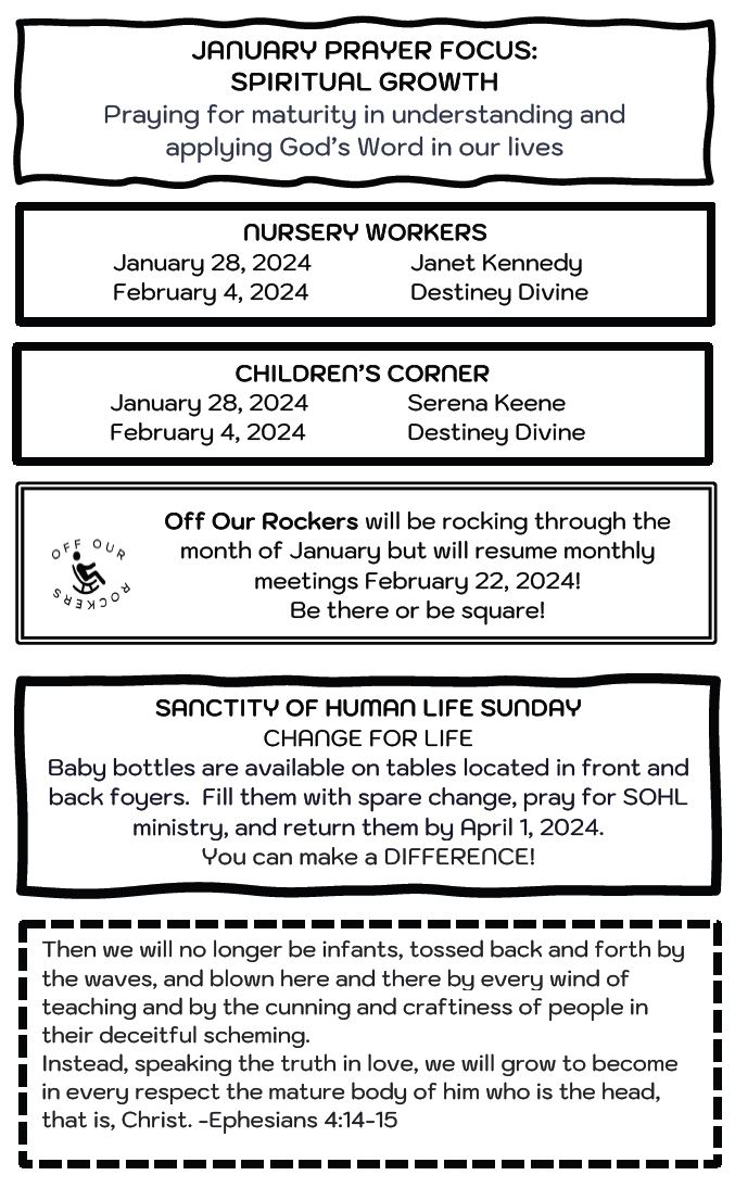 Sunday Bulletin - January 21, 2024