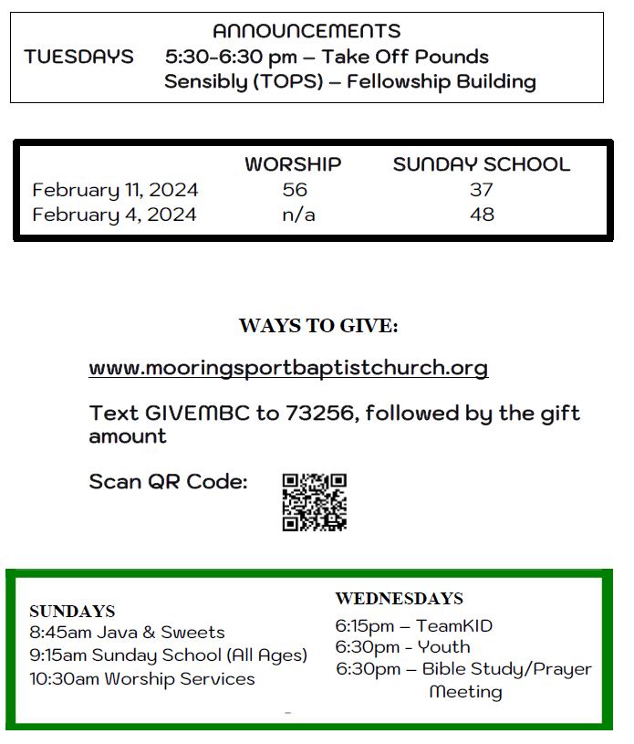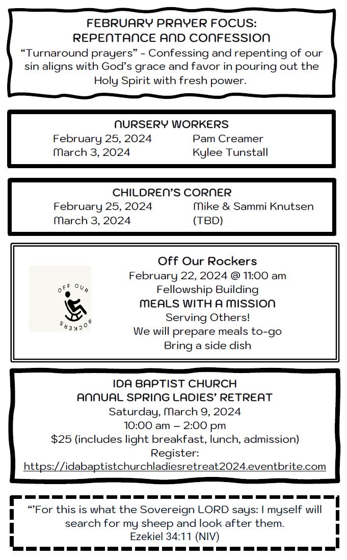 Sunday Bulletin - February 18, 2024