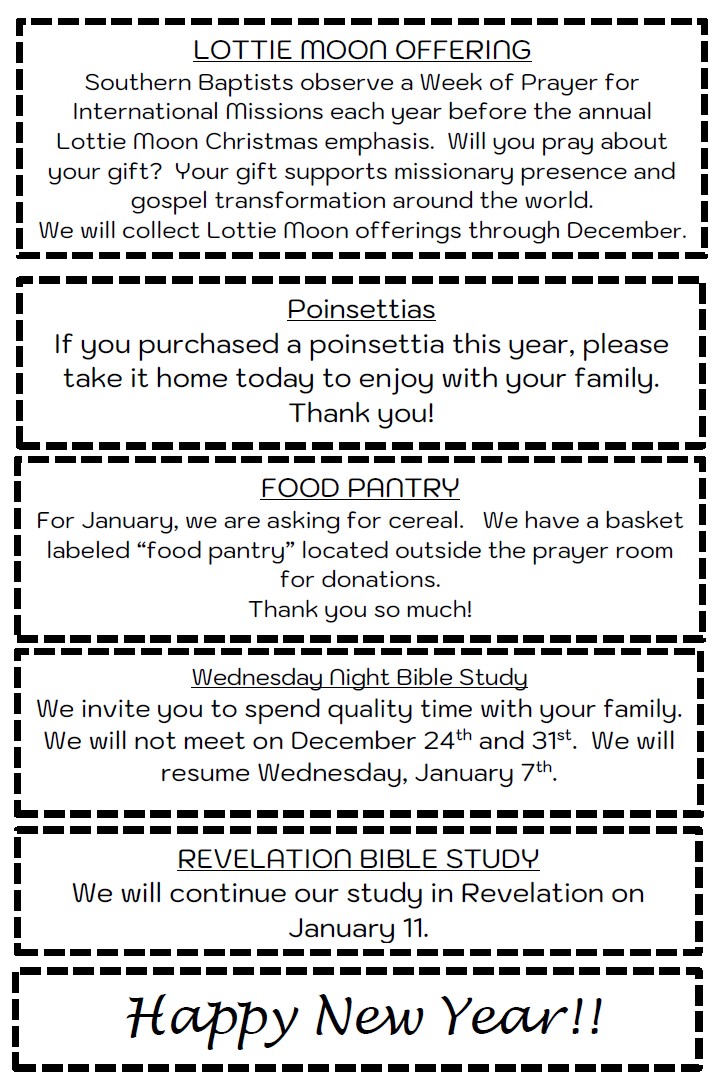 Sunday Bulletin - December 28, 2025