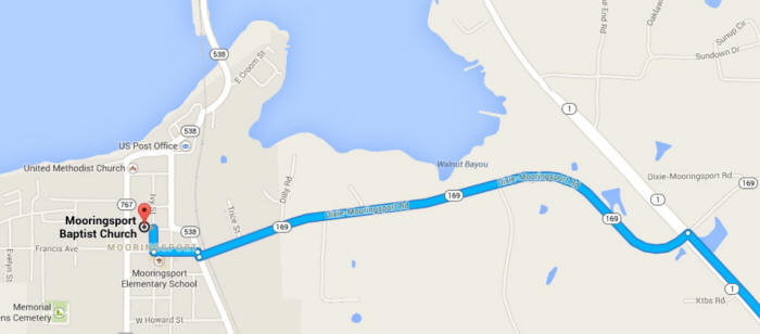 Turn left onto LA-169, Dixie-Mooringsport Rd