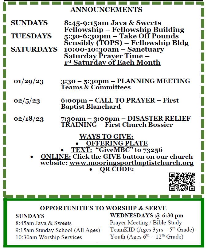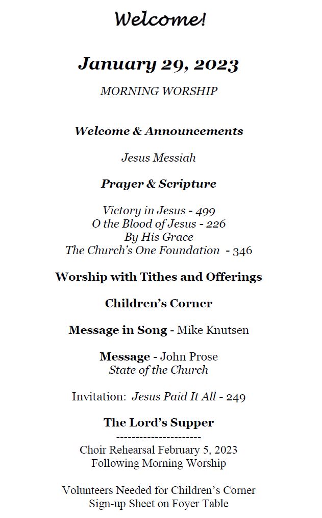 Sunday Bulletin  - January 29, 2023