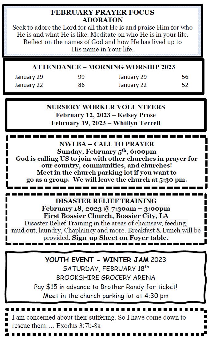 Sunday Bulletin - February 5, 2023