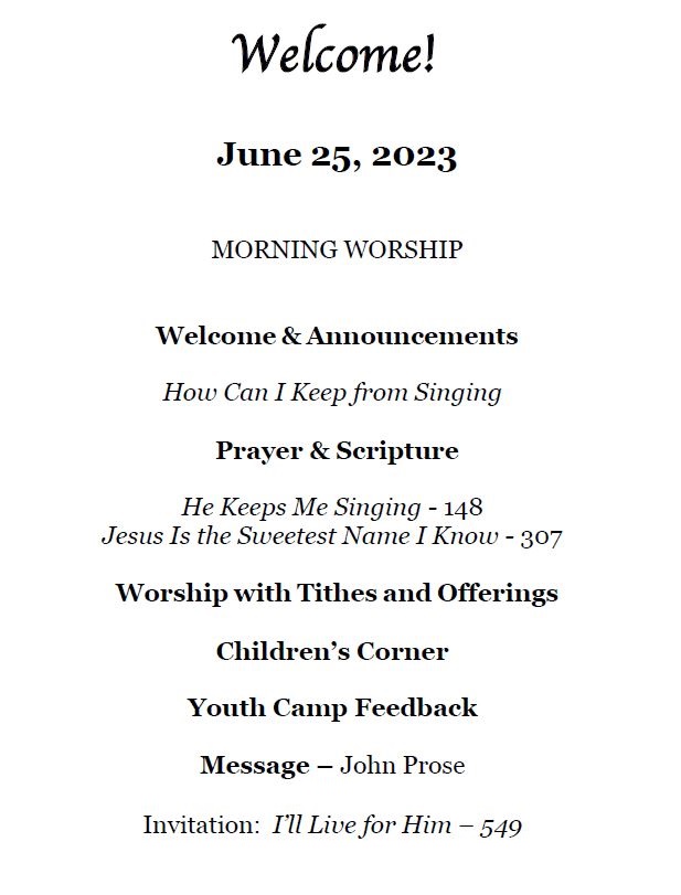 June 25, 2023 Morning Worship
