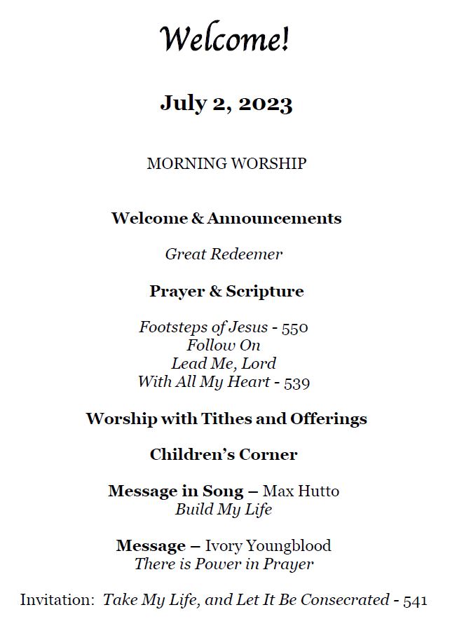 Sunday Bulletin - July 2, 2023