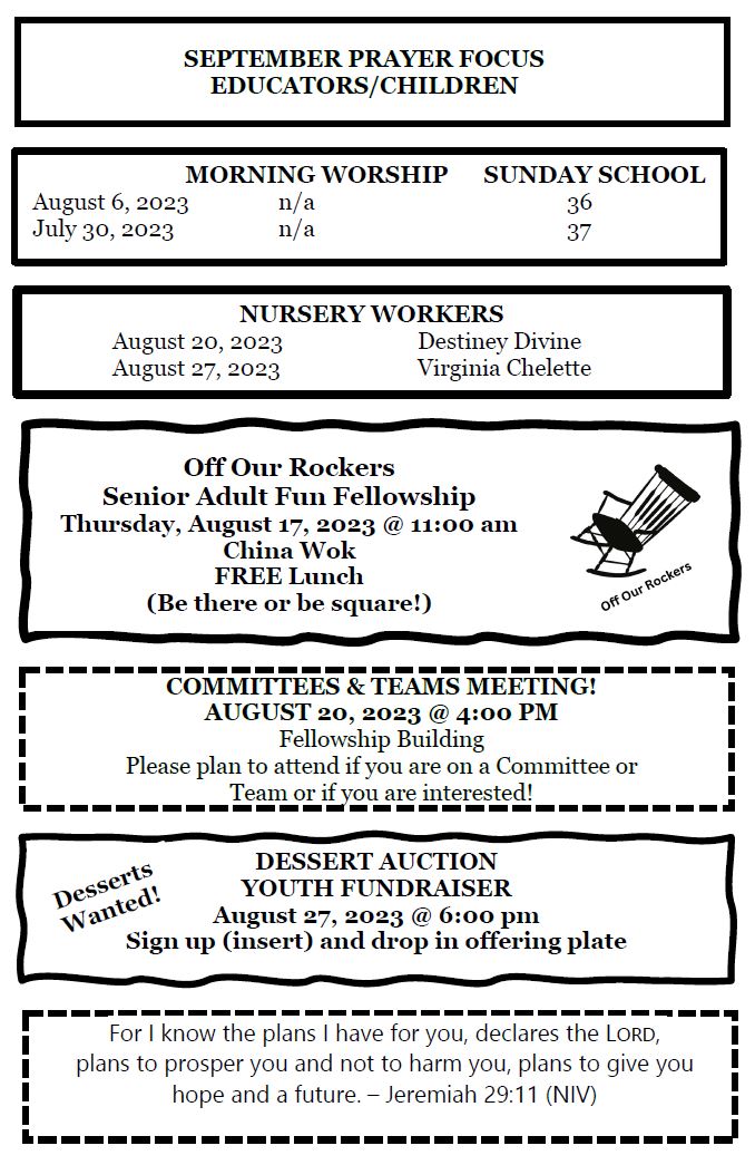 Sunday Bulletin - August 13, 2023