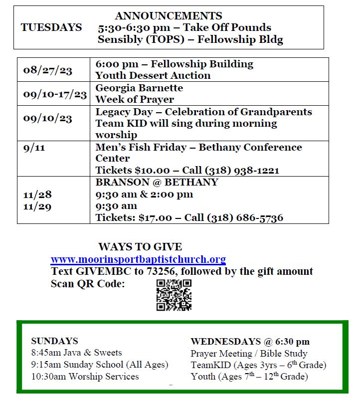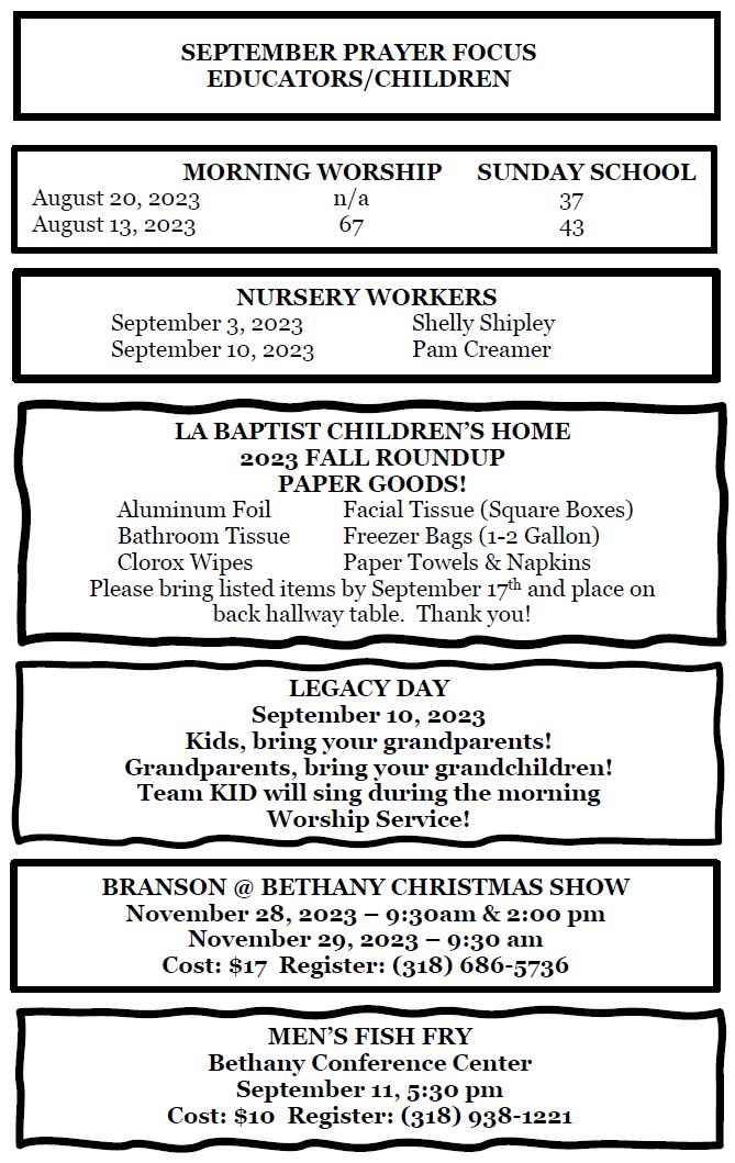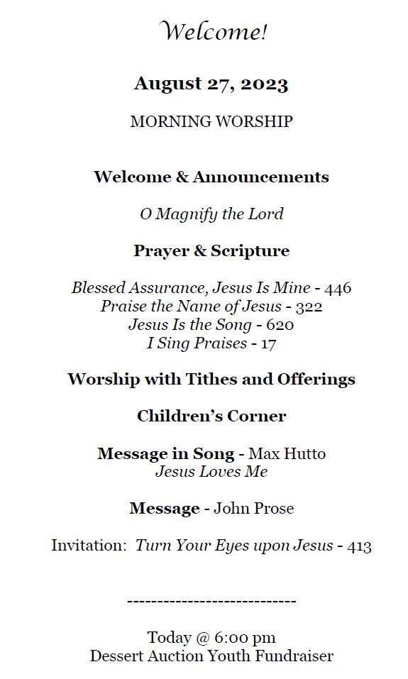 Sunday Bulletin - August 27, 2023