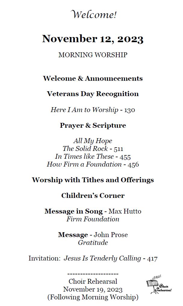 Sunday Bulletin - November 12, 2023