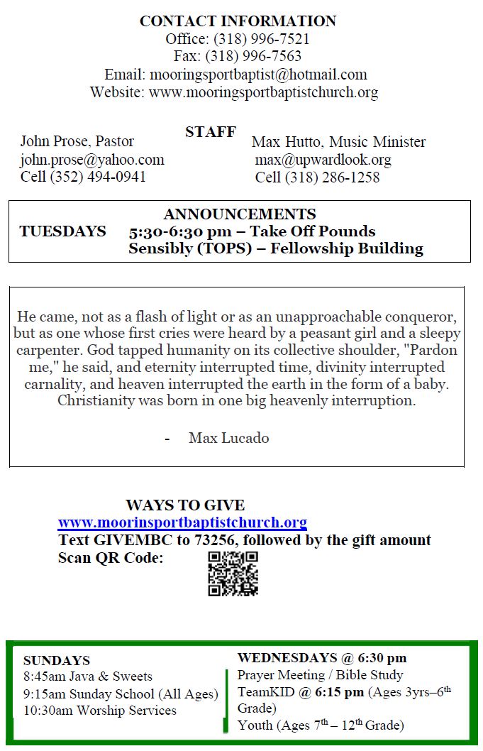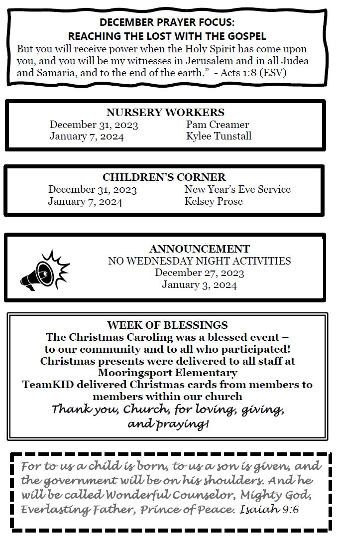 Sunday Bulletin - December 24, 2023