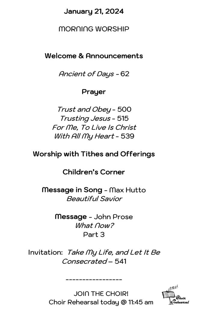 Sunday Bulletin - January 21, 2024