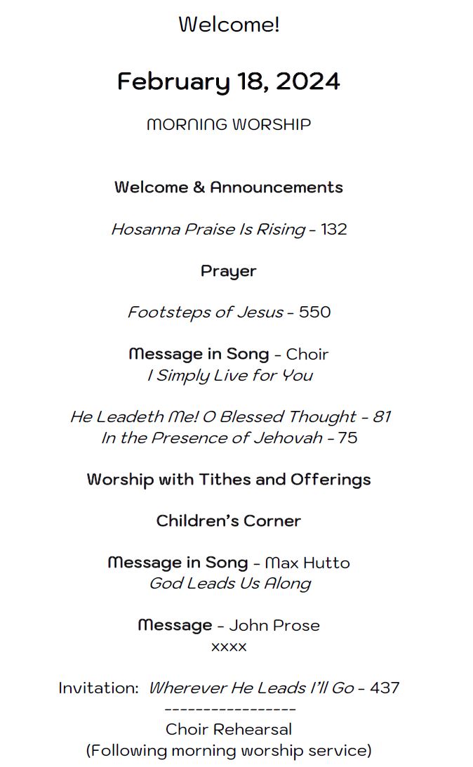 February 18, 2024 Morning Worship