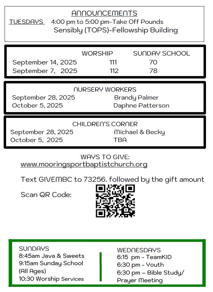 Sunday Bulletin - September 21, 2025