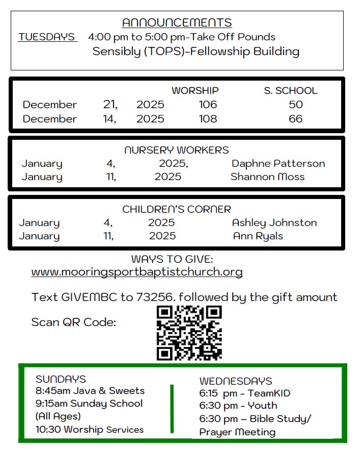 Sunday Bulletin - December 28, 2025