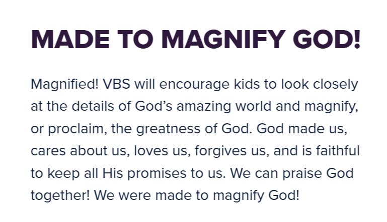 Sunday-Wednesday, June 1-4, VBS Magnified! 5:00-8:45pm