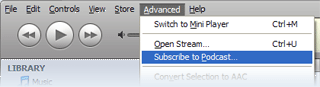 from the menu at the top, and then select, Subscribe to Podcast...